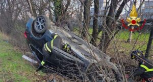 Auto esce di strada e finisce nel fossato lungo la Tangenziale...