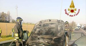 Auto praticamente distrutta da un incendio sulla A1 nel modenese