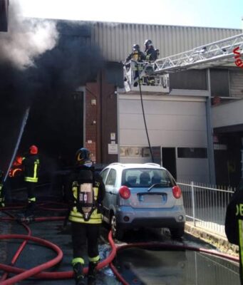 Vasto incendio in un’officina meccanica di Modena