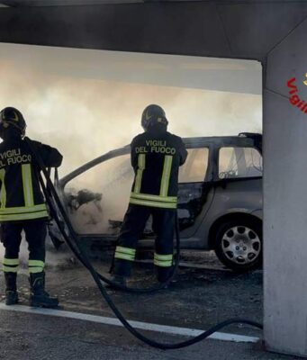Auto a fuoco nei pressi del casello autostradale di Modena Sud